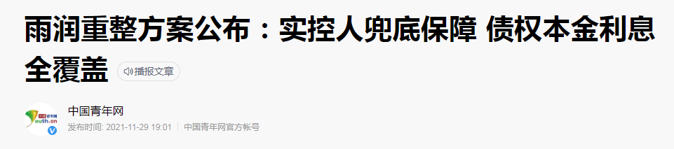 更为严重的是,如果重整方案通过不了,那雨润的结局就只能走法院破产程序,届时普通债权的清偿率只有6.62%,有抵质押的优先债权的清偿率不到四成,雨润3万多名员工或将面临失业的困境,还会影响上千万农民和养猪户的生计。