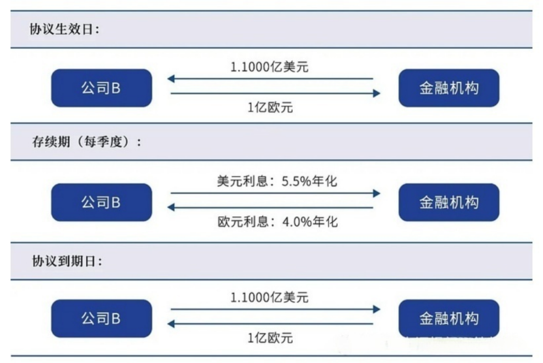 在掉期合约三个月到期后,双方再把本金和利息交换回来。