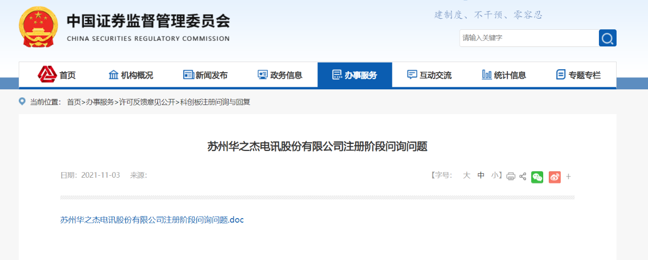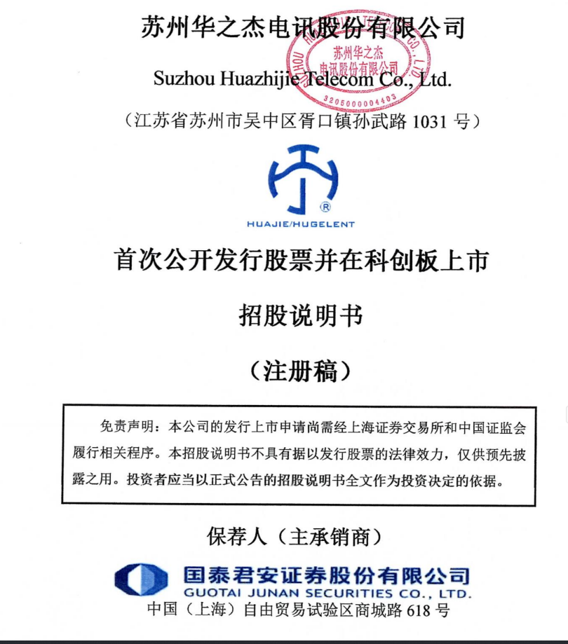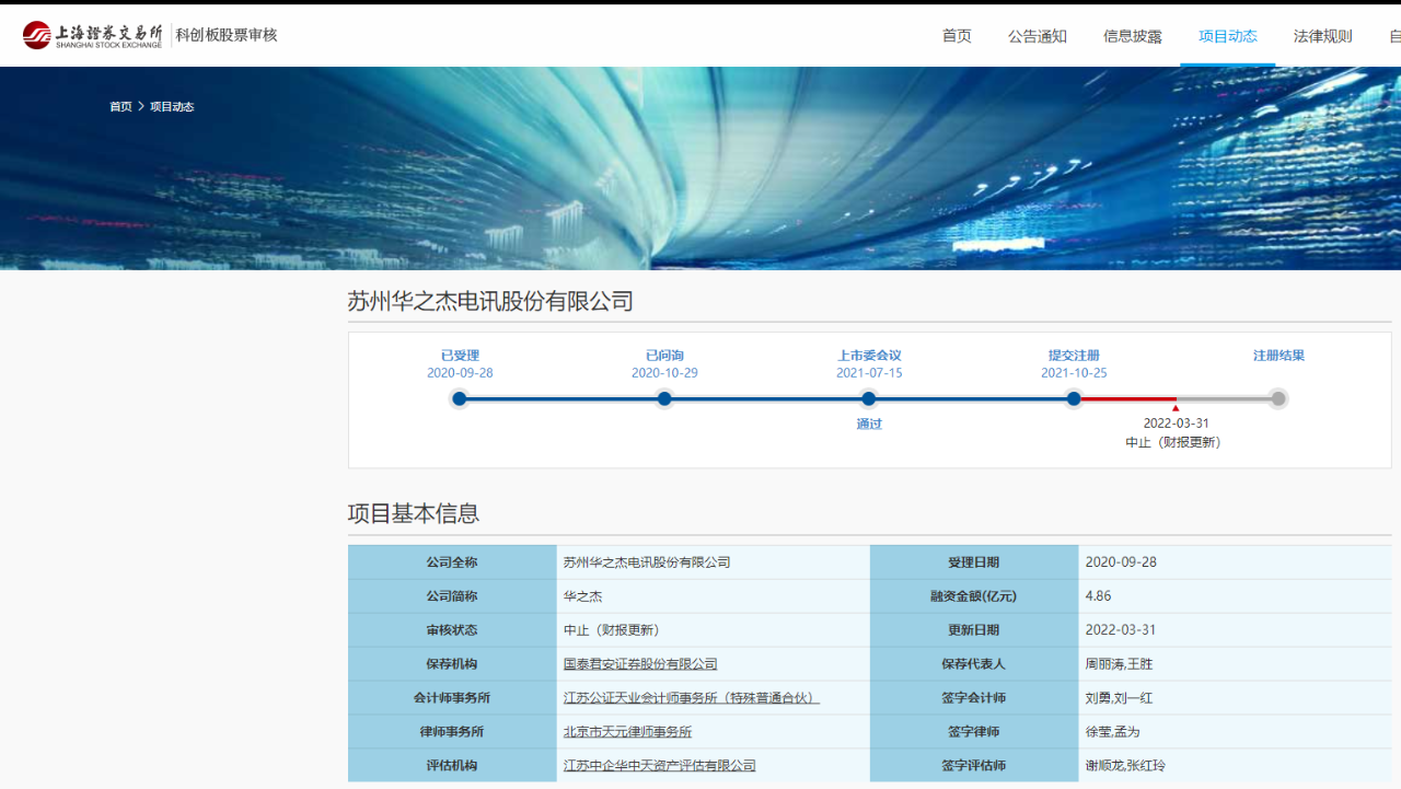2022年4月20日,你公司和保荐机构国泰君安证券股份有限公司提交了《苏州华之杰电讯股份有限公司关于撤回首次公开发行股票并在科创板上市申请文件的申请》(华之杰[2022]第002号)和《国泰君安证券股份有限公司关于撤回苏州华之杰电讯股份有限公司首次公开发行股票并在科创板上市申请文件的申请》(国泰君安司发[2022]456号),主动要求撤回注册申请文件。