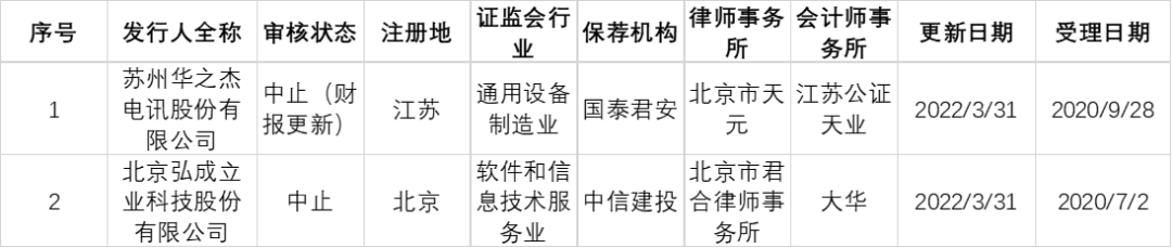 2020年9月28日已受理、2020年10月29日、2021年1月31日被抽中现场检查,2021年7月15日通过上市委会议、2021年10月25日提交注册、2022年5月12日注册程序终止!