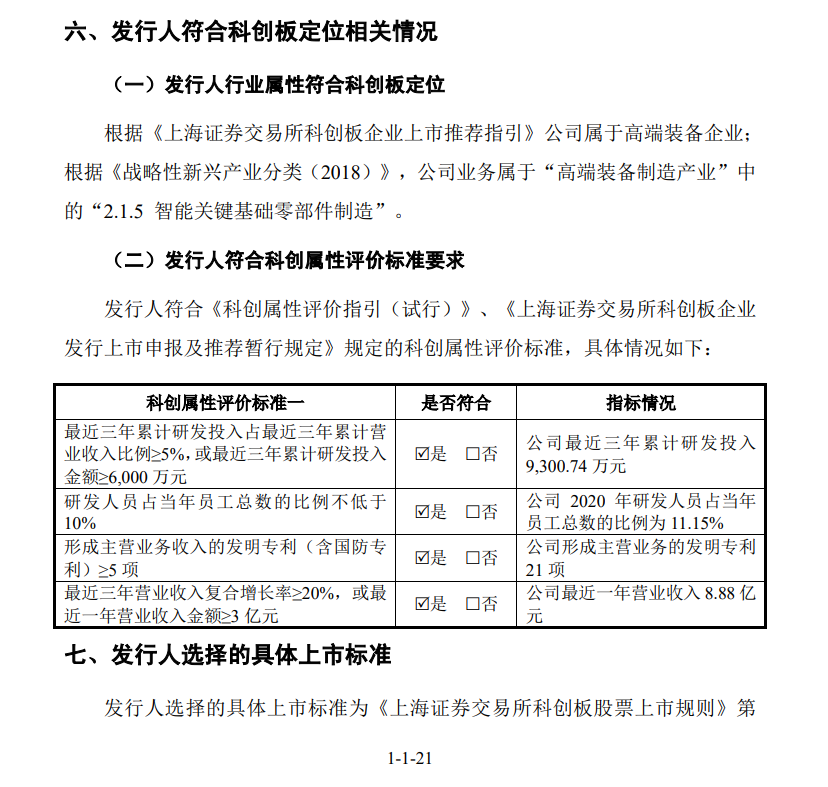 发行人选择的具体上市标准为《上海证券交易所科创板股票上市规则》第2.1.2 条中规定的第(一)项标准,即“预计市值不低于人民币 10 亿元,最近两年净利润均为正且累计净利润不低于人民币 5,000 万元,或者预计市值不低于人民币 10 亿元,最近一年净利润为正且营业收入不低于人民币 1 亿元”。