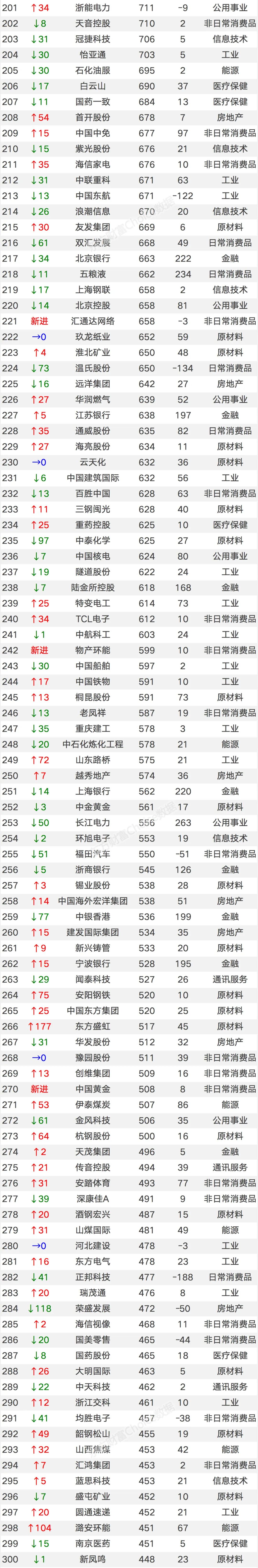 排名提升幅度较大的公司中,包括理想汽车、华鲁恒升、蔚来、智飞生物等知名公司,排名上升均超过100位。此外,排名上升875位的天山股份,本期挤进前100,最新排名第84位,2021年实现营业收入1700亿元。而华夏幸福、阳光城、荣盛发展等个股排名下滑居前。此外,部分港股上市的内房股尚未披露定期报告,排名如何变动尚不得而知。